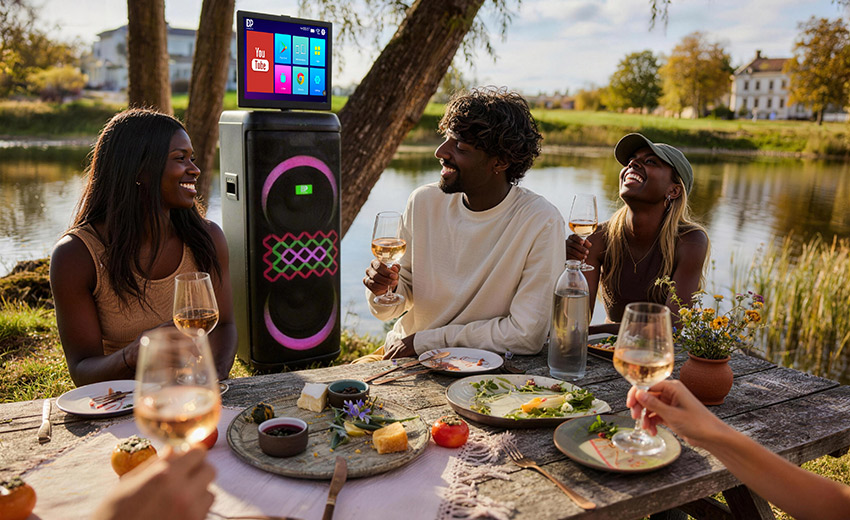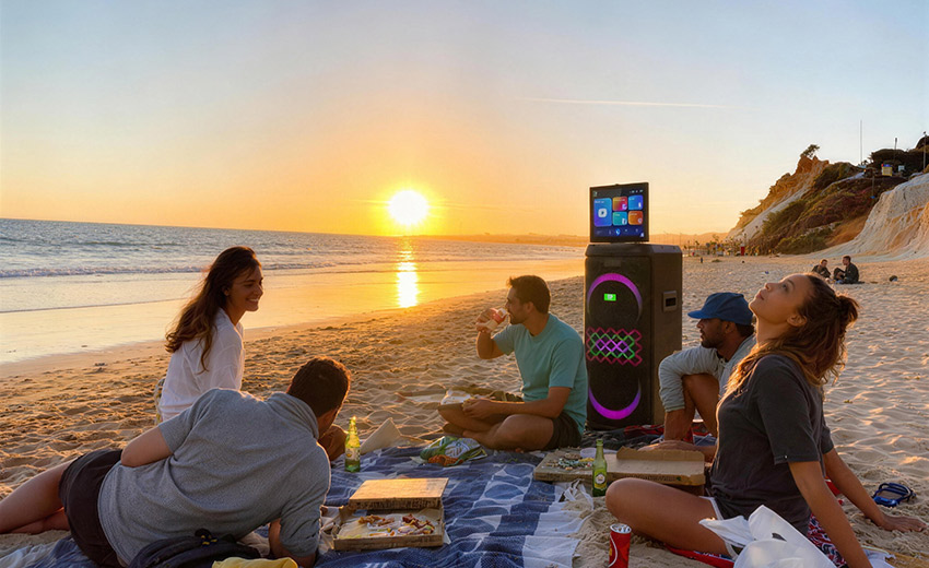 内置7种专业氛围光效,可随音乐节奏同步变幻,一键切换色彩与模式,为欢唱、观影场景营造专属氛围感。