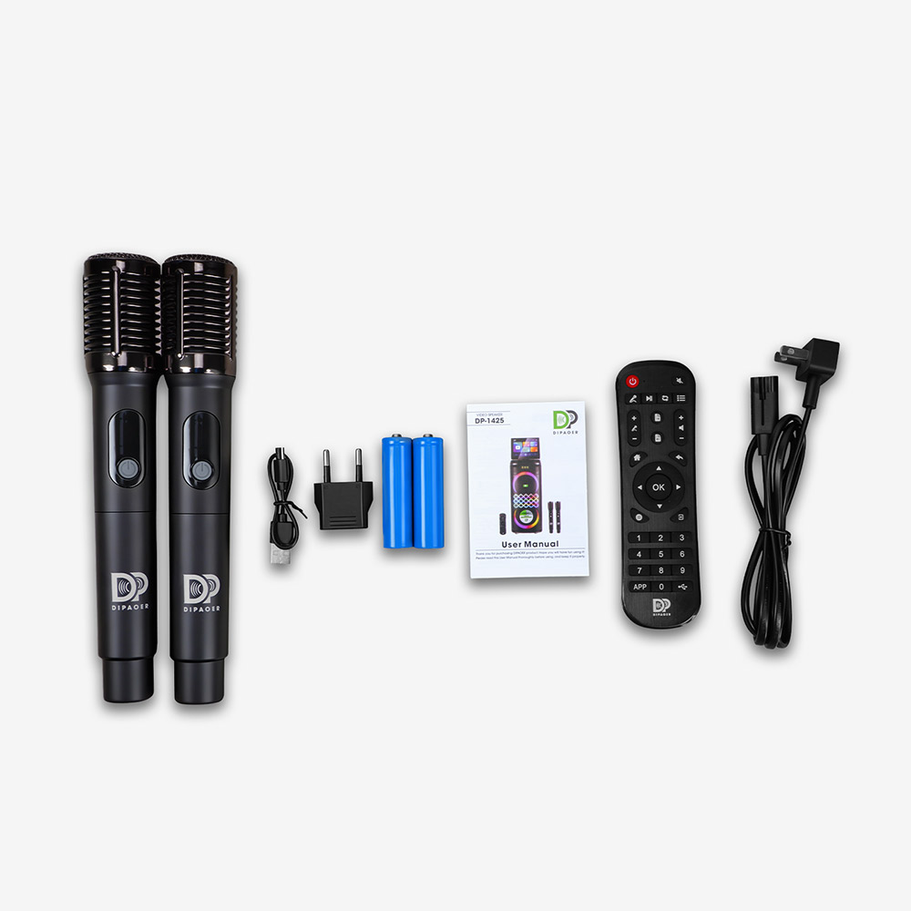 DP-1425 音箱、电源线 ×1、无线麦克风 ×2、遥控器 ×1、用户手册 ×1
