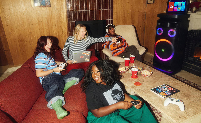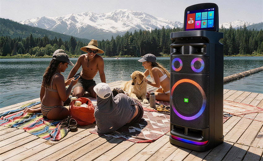 内置7种专业氛围光效,可随音乐节奏同步变幻,一键切换色彩与模式,为欢唱、观影场景营造专属氛围感。