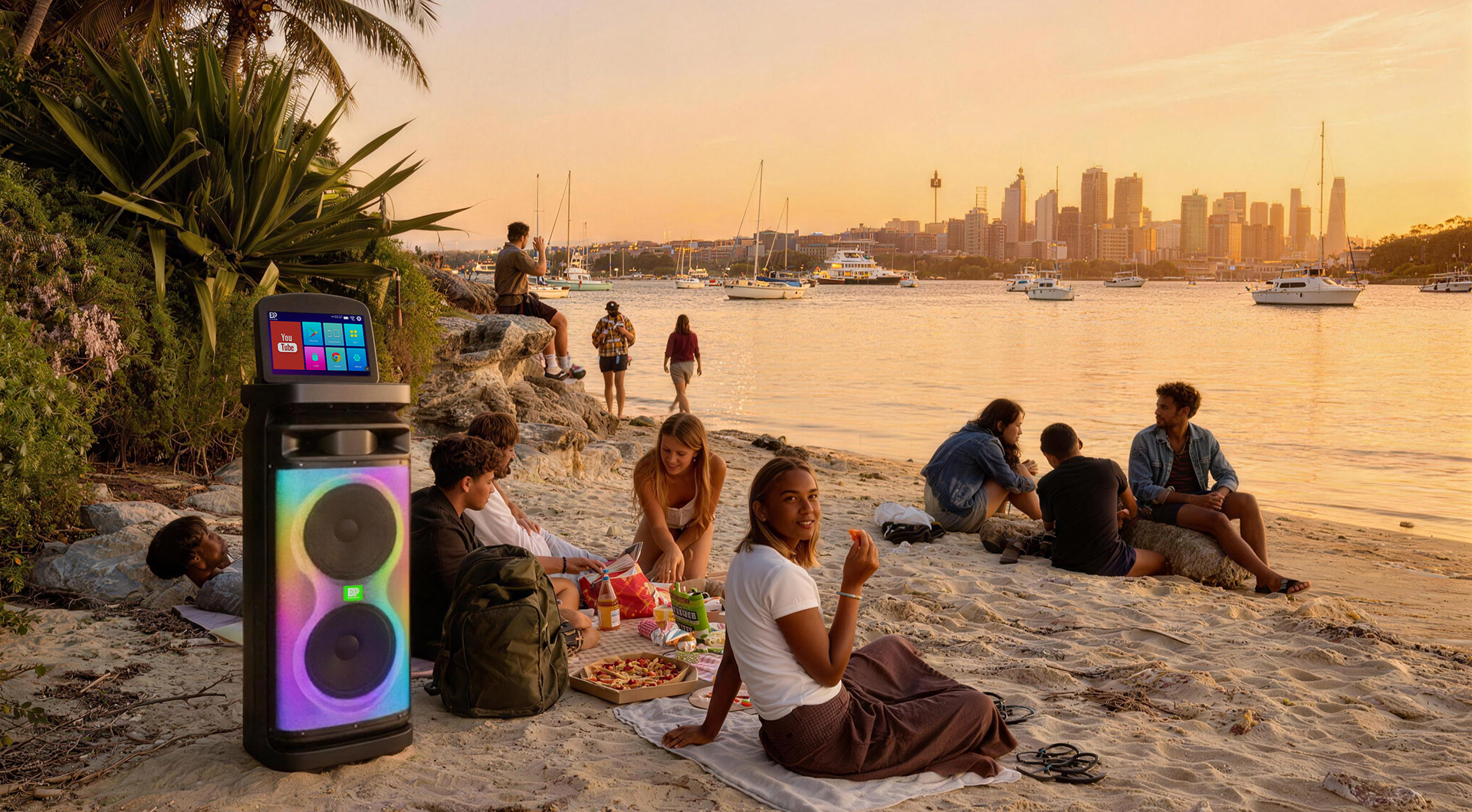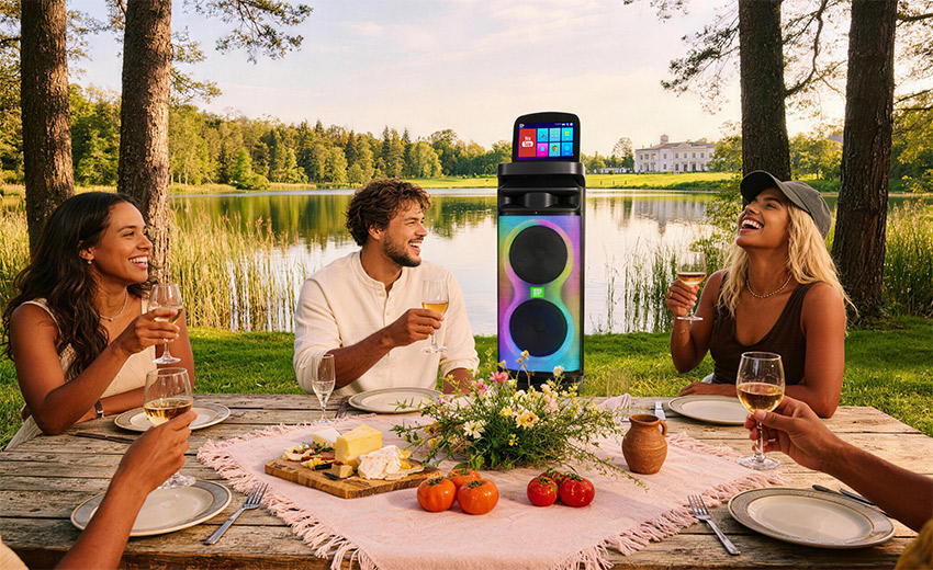 内置7种专业氛围光效,可随音乐节奏同步变幻,一键切换色彩与模式,为欢唱、观影场景营造专属氛围感。