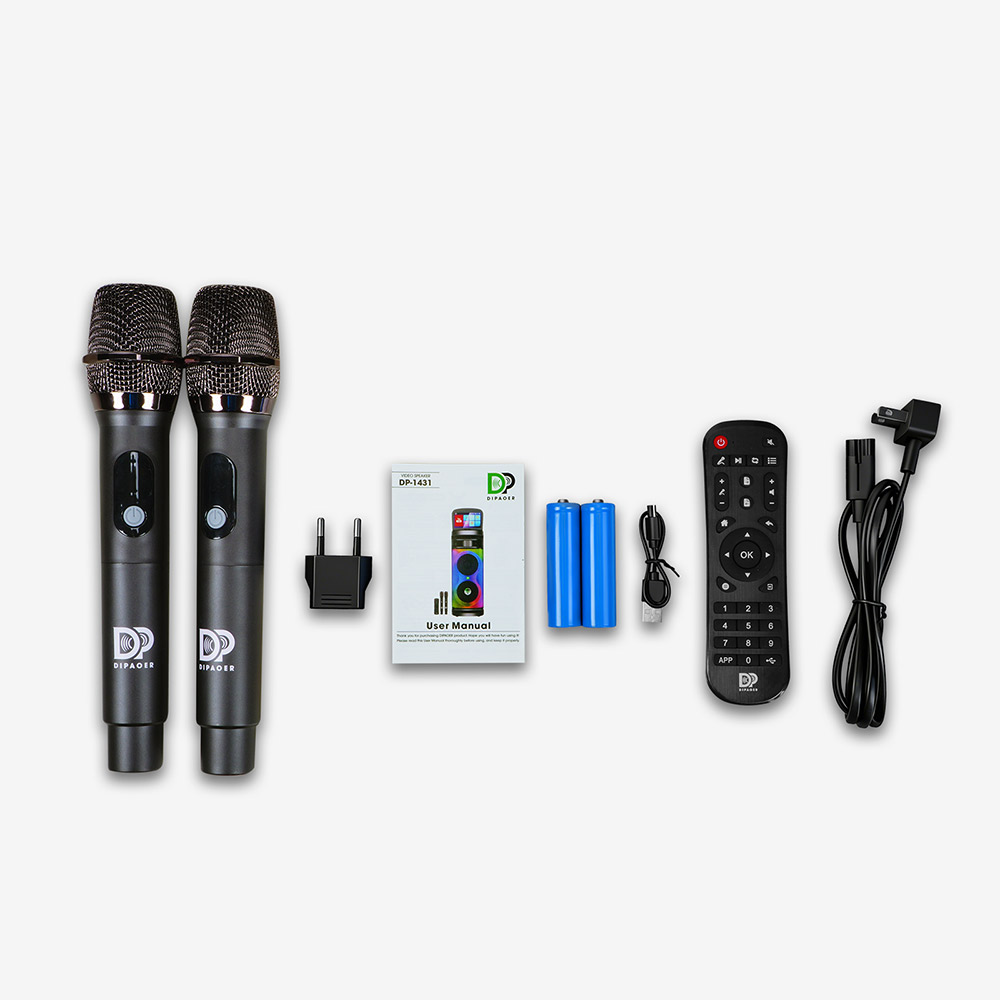 DP-1431 音箱、电源线 ×1、无线麦克风 ×2、遥控器 ×1、用户手册 ×1