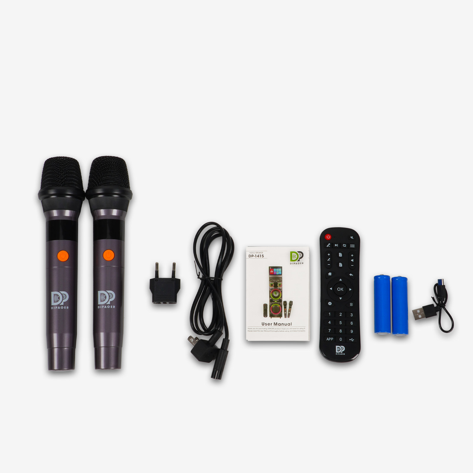 标配两支专业蓝牙麦克风,超心形指向性设计有效抑制啸叫,收录清晰饱满人声。每支麦克风均可独立调音,双人对唱亦能展现独特音色。