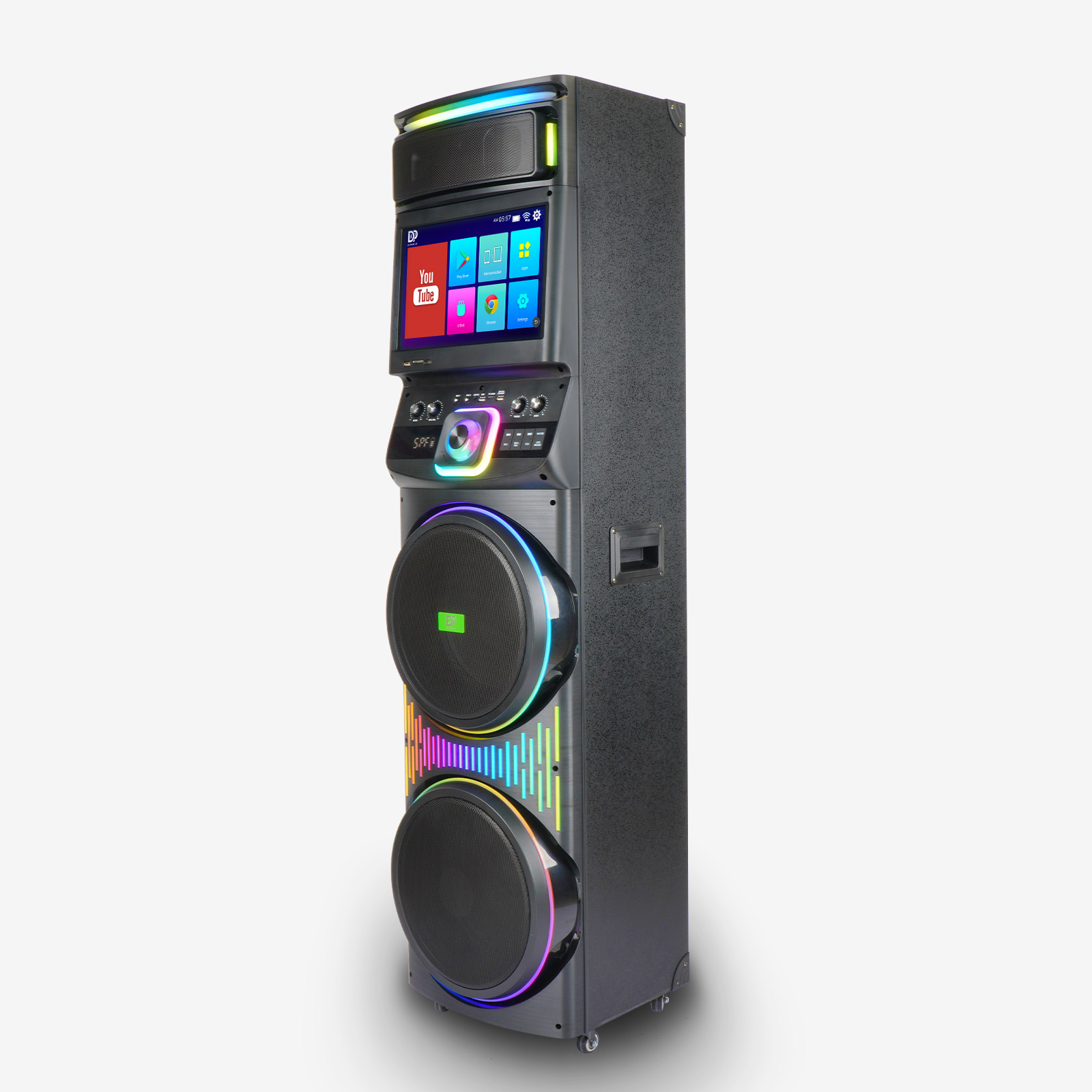 搭载2+32G大内存并支持扩展,cpu采用22纳米2G超强芯片,EMC5.1最高传输速度达200M/s,LPDDR4超快闪存,标配双频WIFI6 2.5G/5G,理论最高无线速率可达2976Mbps,保障系统全程流畅运行。配备1280*800高清大屏,歌词MV清晰锐利,点亮每一次聚会的高光时刻。
