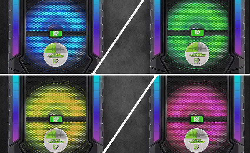 4种氛围灯。可随音乐节奏自动变换或手动切换