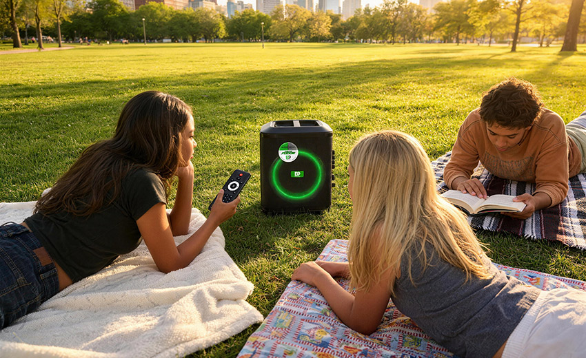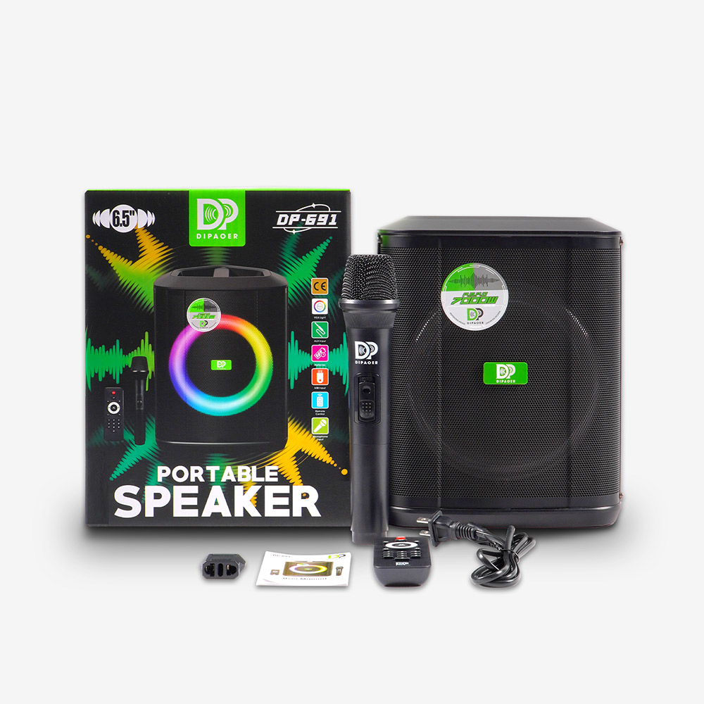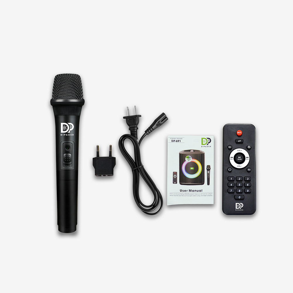LED数显屏,实时显示电量、歌曲信息;配备多功能红外遥控器,可远程控制播放、切换曲目、灯光模式等。
